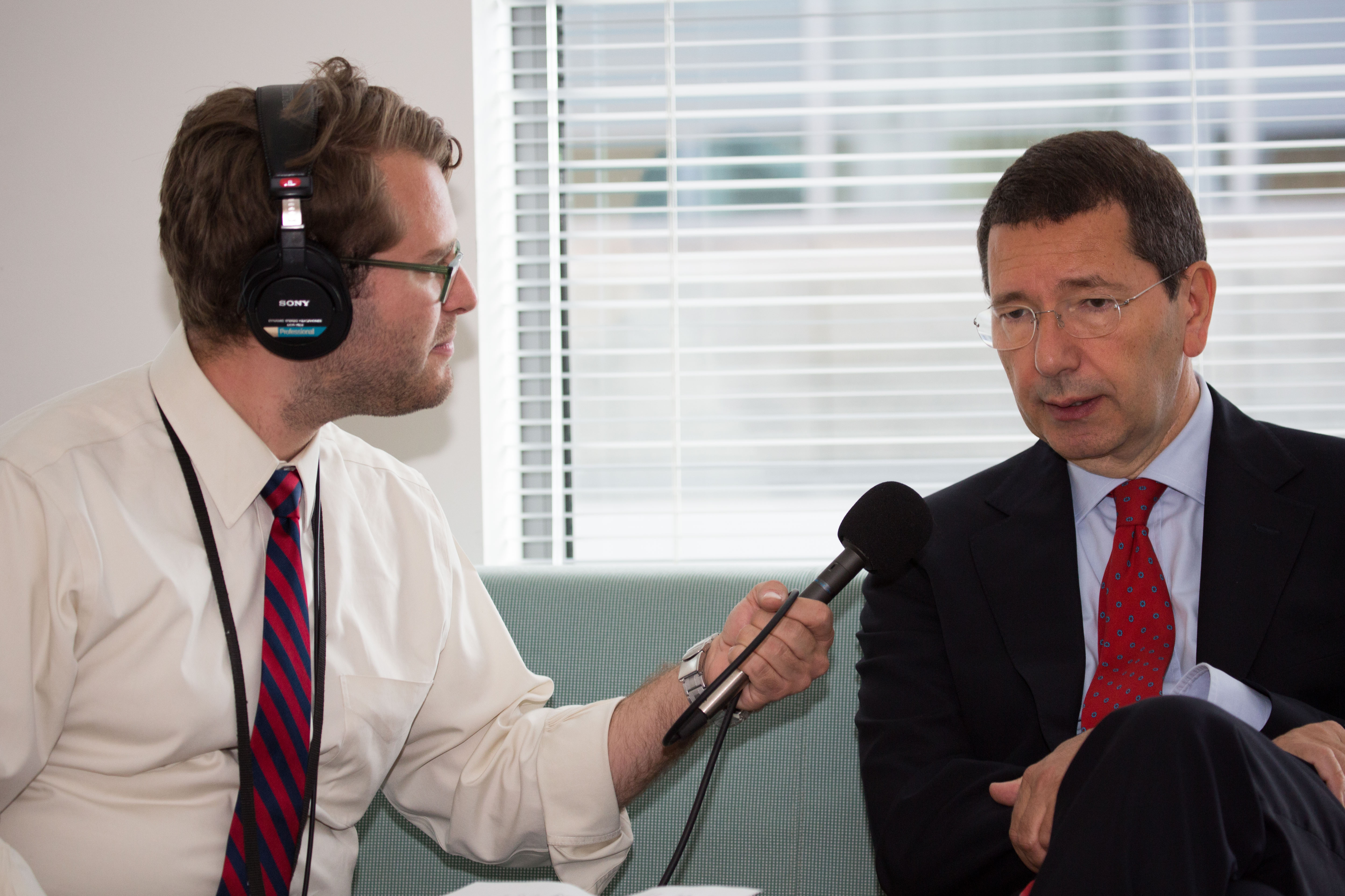 Interviewing the mayor of Rome, Ignazio Marino, for WBUR’s Radio Boston. May 2014. (Photo courtesy of Steve Snyder)